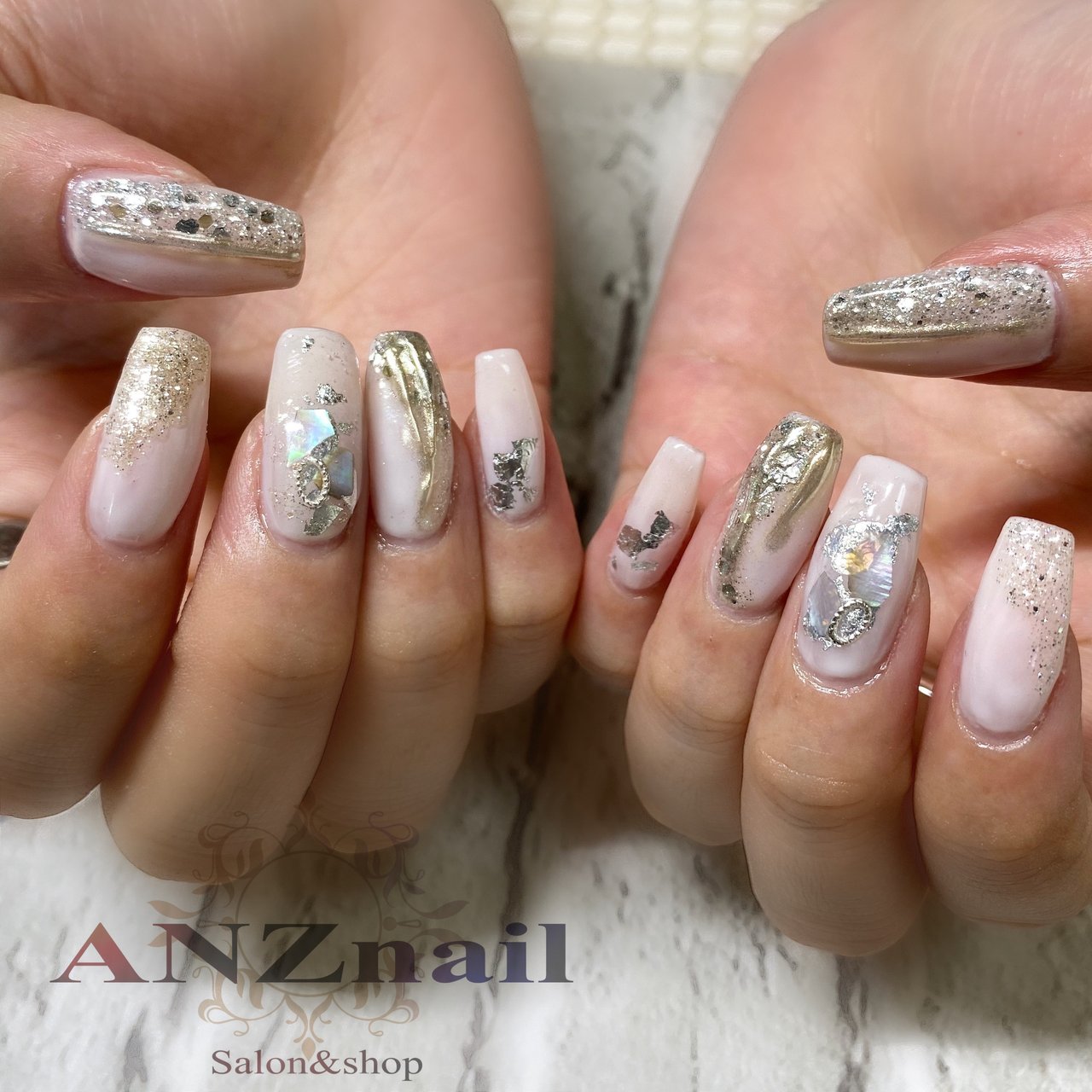 春 ハンド シェル ニュアンス ミラー Anznail 旭川市ネイルサロン ネイリストあんず のネイルデザイン No ネイルブック