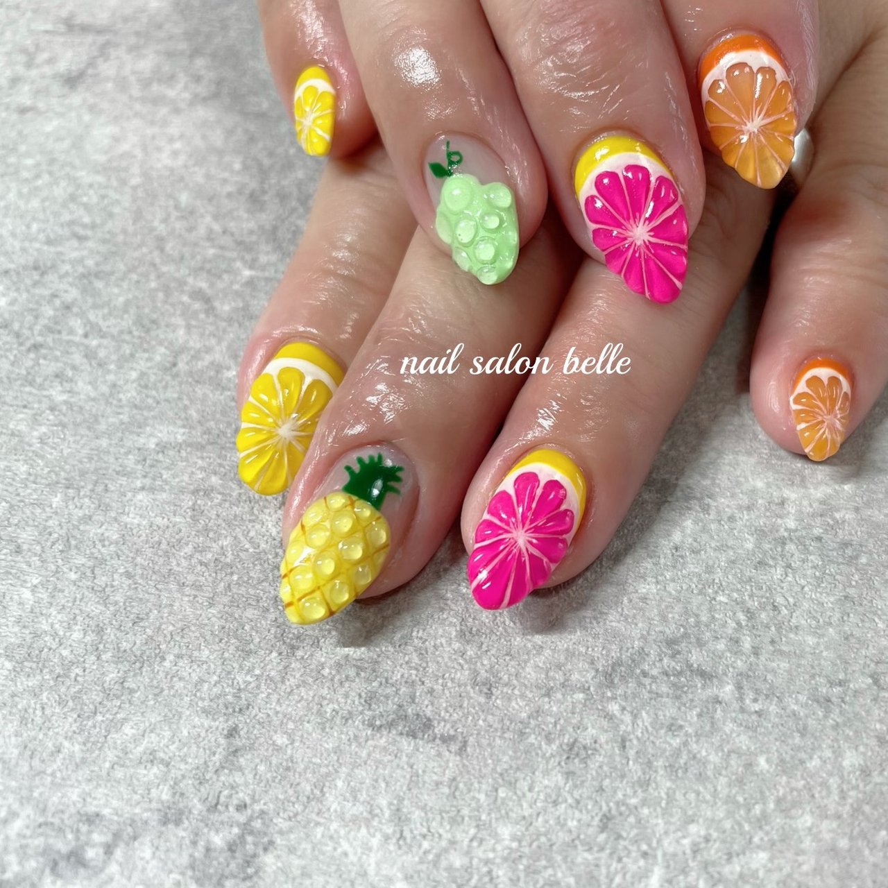 夏 ハンド フルーツ ミディアム ネオンカラー Nail Salon Belleのネイルデザイン No ネイルブック